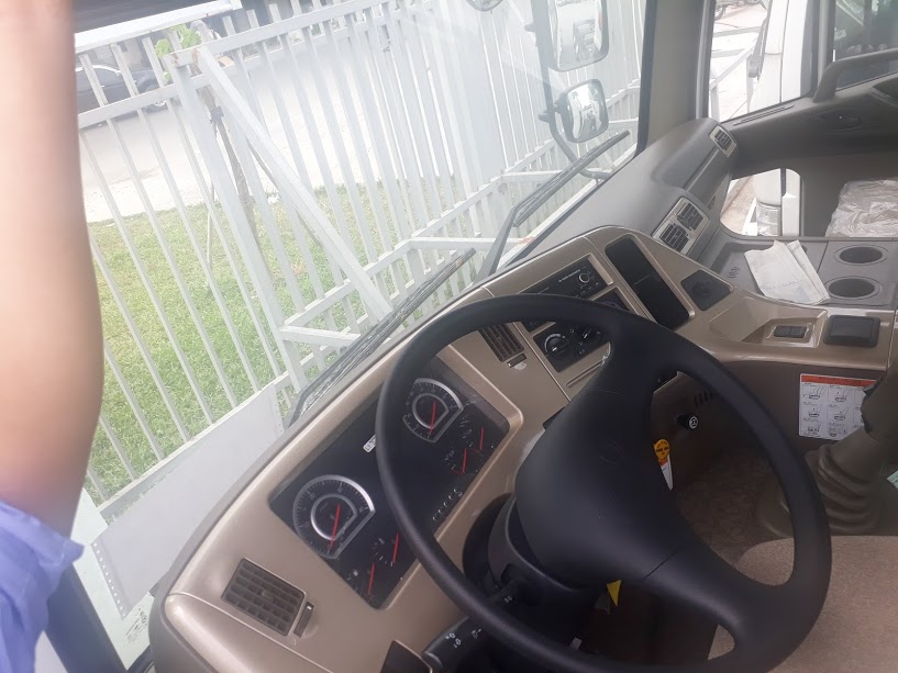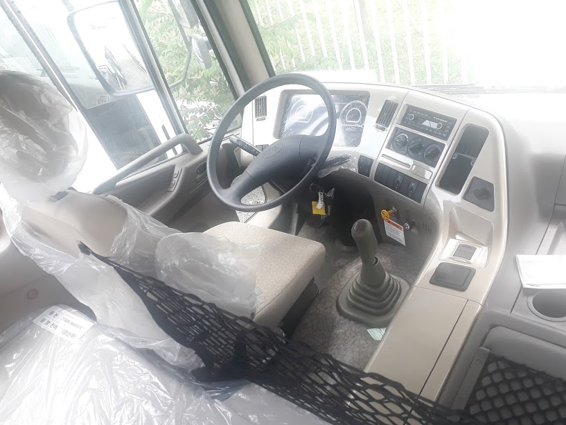 Đối với Cabin xe ben Daewoo 3 chân luôn được thiết kế theo phong cách Châu Âu sang trọng đẹp mắt có hệ thống đèn tiêu chuẩn góc sáng rộng đặc biệt có tấm che nắng phía ngoài có gắn đèn hai đầu rất thuận tiện cho việc vận hành xe vào thời tiết oi bức. hiện đại hơn với Nội thất được thiết kế rộng rãi thông thoang nóc cabin cao tầm quan sát rộng hơn với hệ thống kính chỉnh điện, thoải mái nhất với hệ thống máy lạnh đời mới làm mát nhanh. Đặc biệt ghế hơi tự động cân bằng, nút chỉnh điện , thiết kế gường năm rộng rãi, nệm lớn