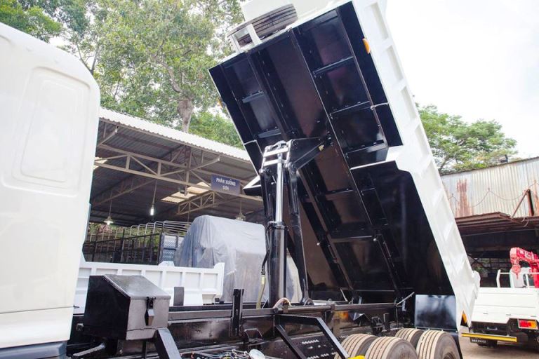 Thùng dầu thủy lực gắn liền với hệ thống xy lanh nâng hạ thùng