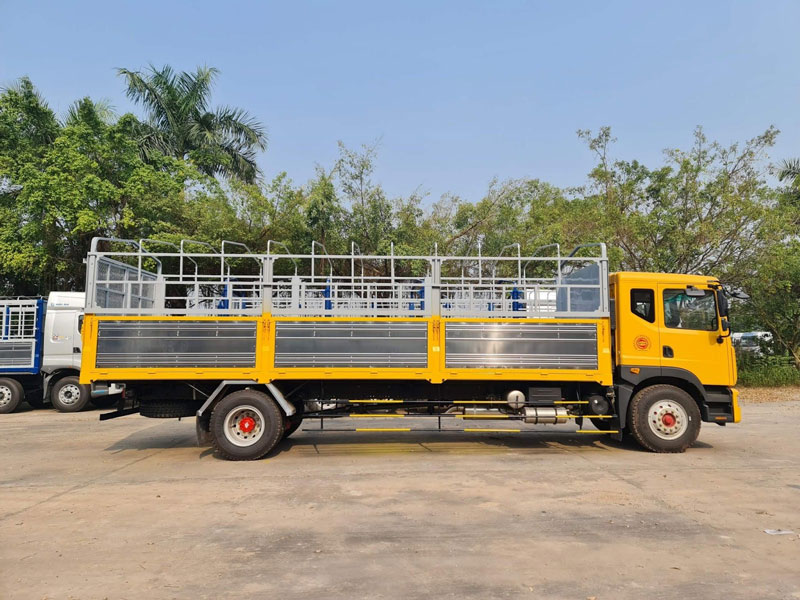 Xe Dongfeng 9 tấn D11 thùng bạt 6 bửng hông và 01 bửng sau rất thuận lợi trong việc xếp dỡ hàng, tiết kiệm thời gian và nhân công