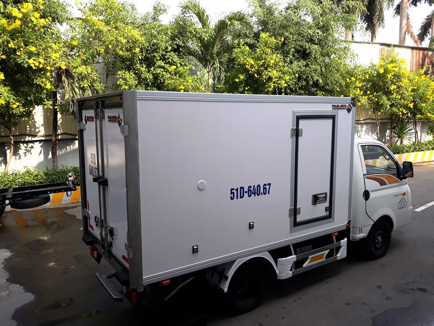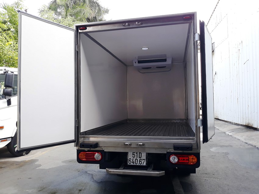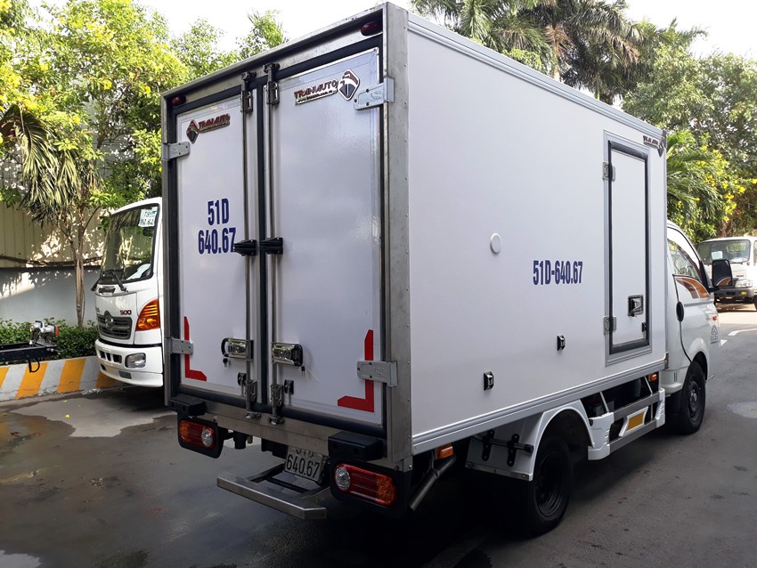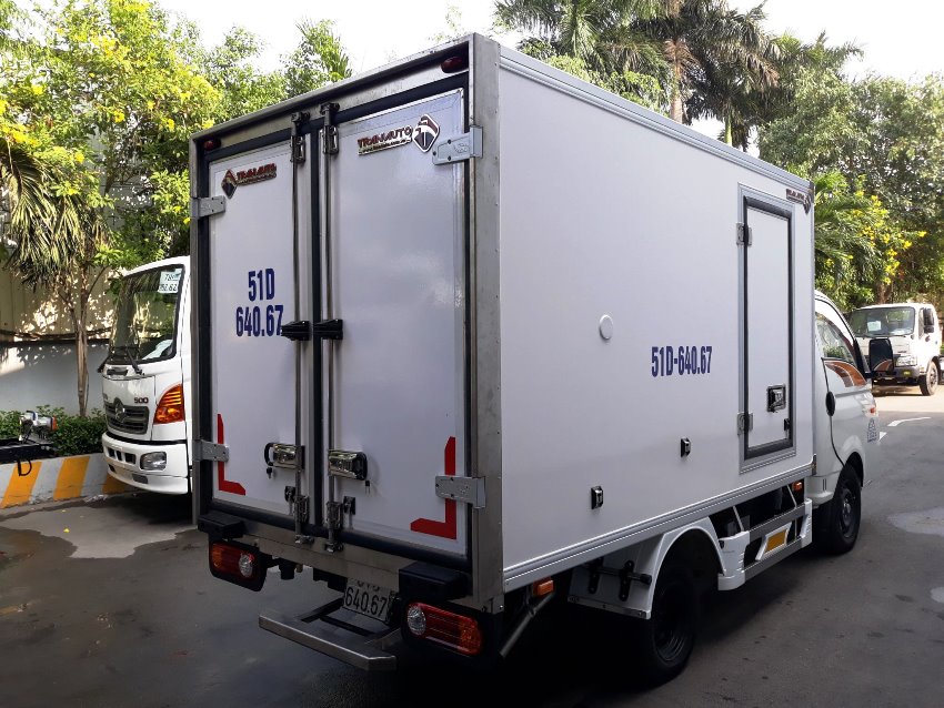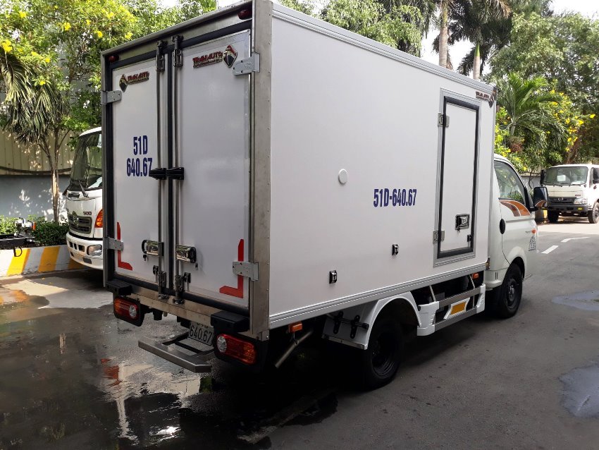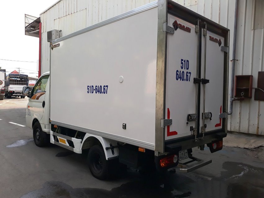 Do xe đổ form chất lượng nhập khẩu châu Âu. dầy và an toàn . nên tải trọng thùng xe đang kí chuẩn 990 kg xe tải đông lạnh hyundai 1 tấn thùng tiêu chuẩn châu âu ,máy lạnh THERMAI MATER T1400 NHẬP KHẨU KOREA