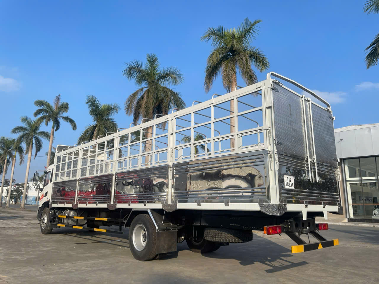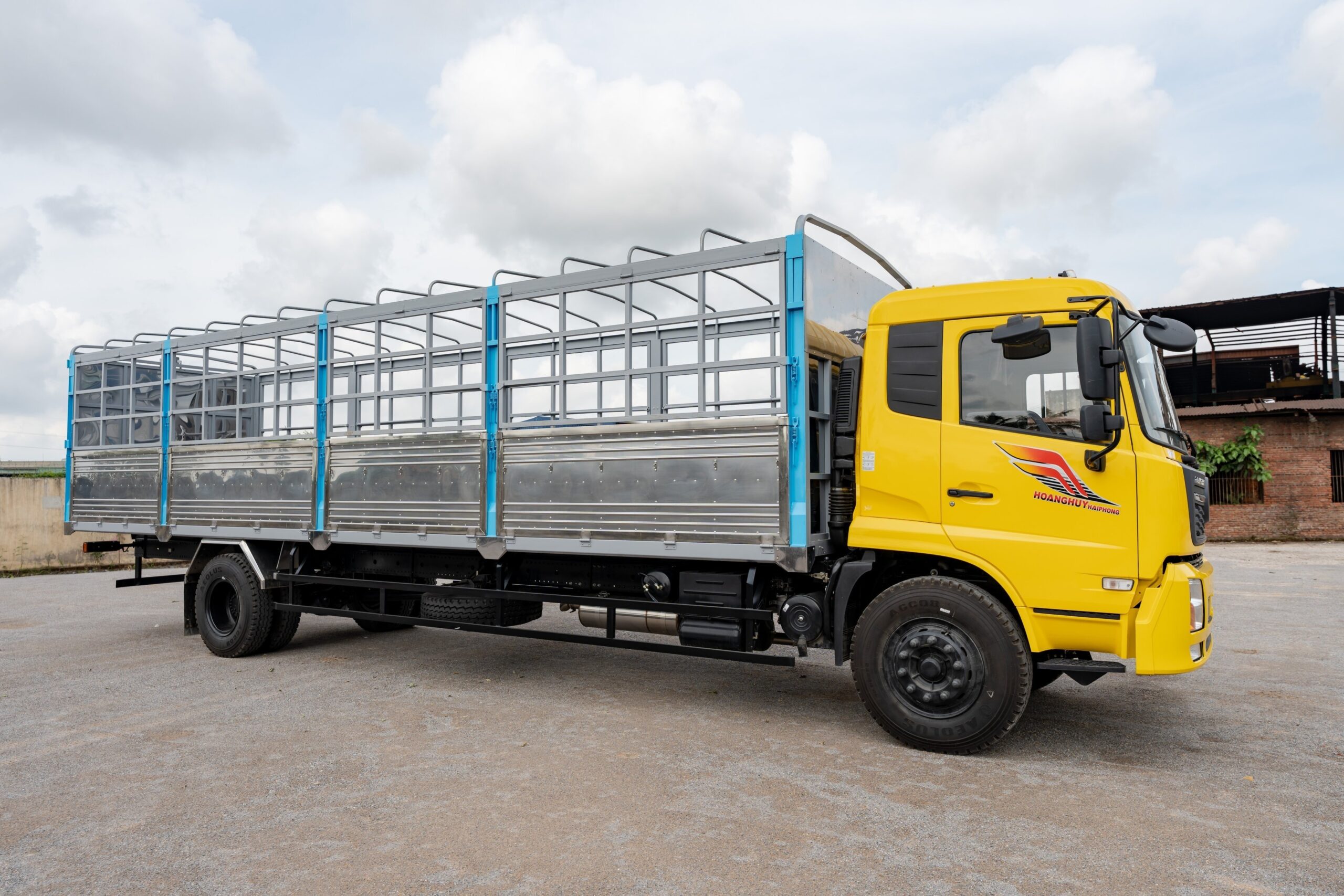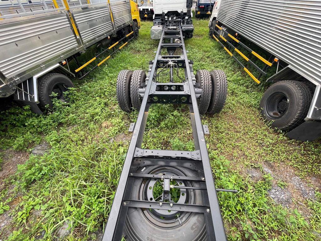 Khung gầm chassis 02 lớp, tiết diện kiểu chữ U (300 x 75 x 10), kết cấu thanh ngang, cố định bằng đinh tán cỡ lớn, chắc chắn, chịu lực và cân bằng.