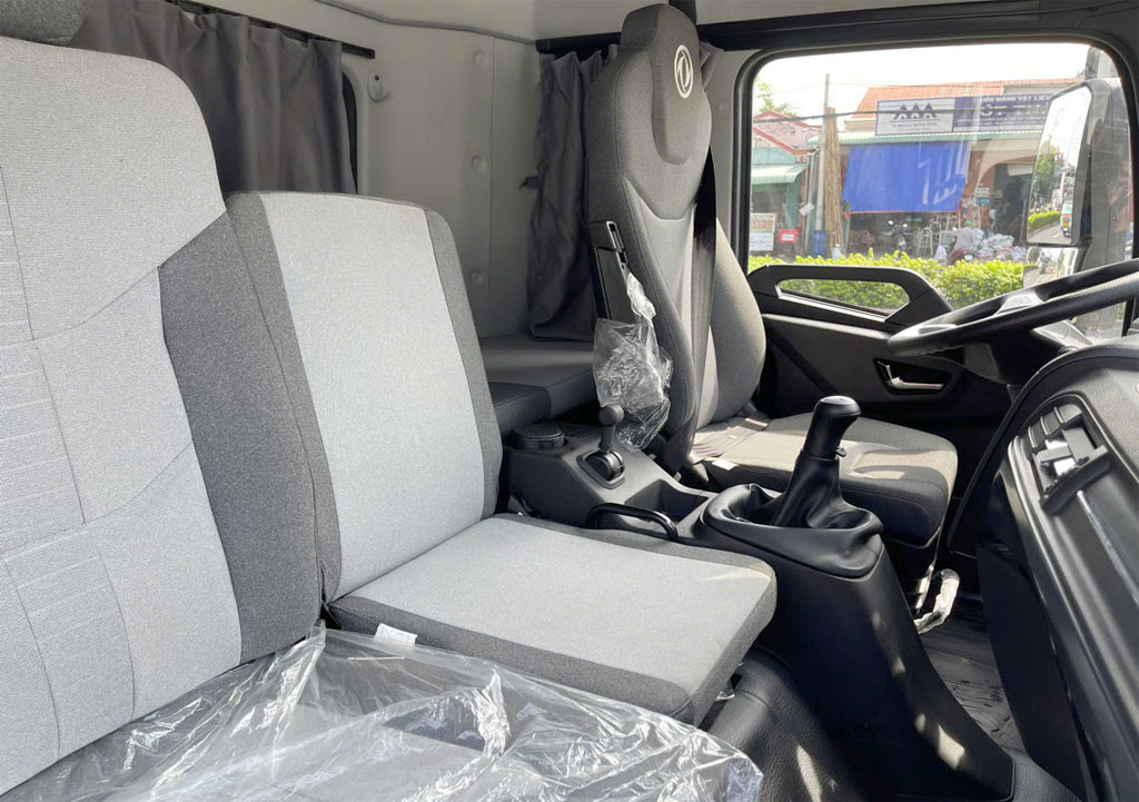 Xe tải Dongfeng tấn thùng 7.5m trang thiết bị hệ thống điều khiển đồng bộ, độ chính xác cao, đảm bảo cho lái an toàn, vận hành rất ổn định, tiết kiệm nhiên liệu, thời gian và chi phí bảo dưỡng. Hộp số 2 tầng nhanh chậm 8 số tiến, 2 số lùi tăng giảm tốc độ và chuyển tầng phù hợp với trọng tải thích hợp với cung đường hoạt động. Hệ thống phanh tang trống khí nén 2 dòng có lốc kê trục sau. Hệ thống lái trục vít ê-cubi cơ khí trợ lực thủy lực.
