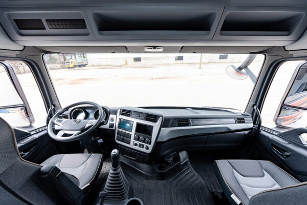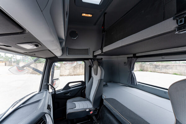 Xe Tải Dongfeng 5 Chân L360 sở hữu thiết kế Cabin kiểu mới đầu cao 2 giường nằm với tạo hình kiểu hàm cá mập thể hiện uy lực dung mãnh, tạo hình đường nét mạnh mẽ, tinh xảo được thiết kế bở đội ngũ của Volvo.